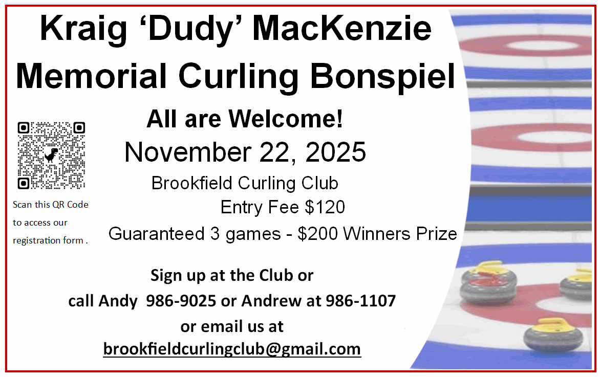 All are Welcome to join us at our 3rd 'Dudy' Memorial Bonspiel! A great day of curling with friends (and strangers), all teams are guaranteed 3 games (6 ends) in a 'Points' format event where the team earning the most points (wins, ends won, score spread) can claim our prize money. Entry Fee is $120/team with a $200 Winners Prize. ... Read More